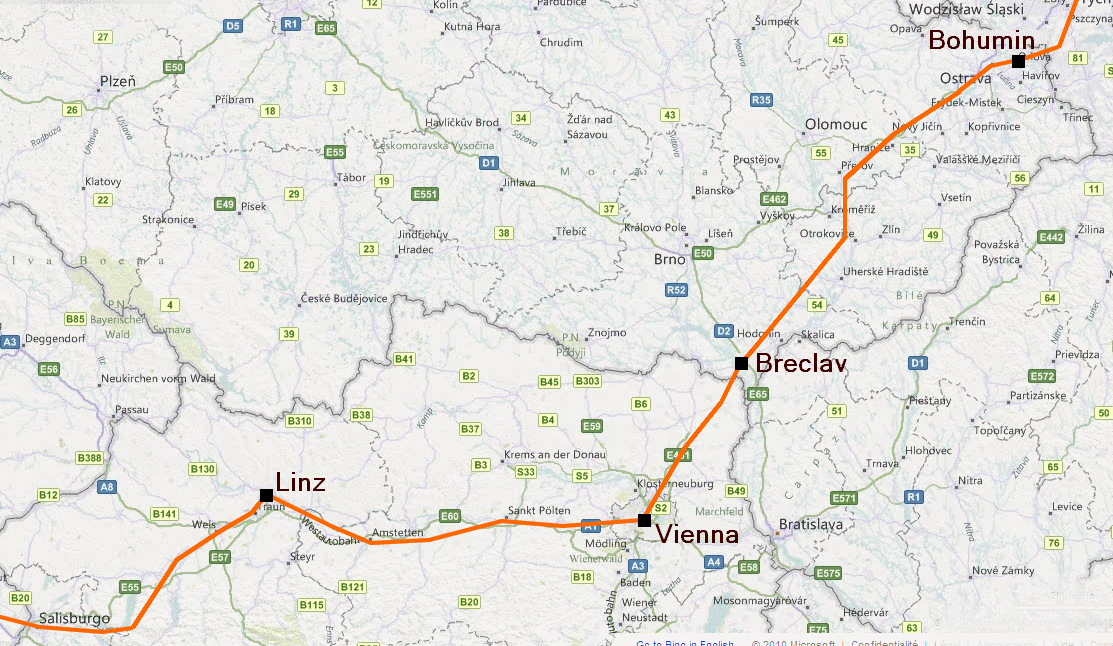 Katowice alle 13.49 vicina a Cracovia. La seguente fermata é la piccola stazione di frontiera di Zebrzvdowice dove il treno ferma alle 15.17 e ci sosterà per 50 minuti. Poco dopo il treno entra nella Repubblica Ceca e ferma alle 16.22 a Bohumin anch'essa stazione di frontiera. E qui sosta 45 minuti. |